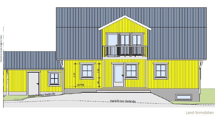 Projektplanung, Nähe Trier im Juli 2011. Klassisches Schwedenhaus mit Mansardendach. Besonderheiten: Das Schwedenhaus wird auf ein Grundstück mit unverbaubarer Fernsicht gebaut.