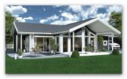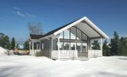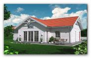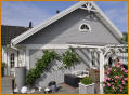 >>> z. B. Holzhaus-Bungalow Typen aus der Trubaduren-Serie - mit überdachten Eingangs- und Terrassenbereichen, Garagen-/Geräteraum-Kombinationen...