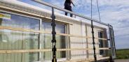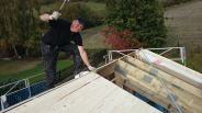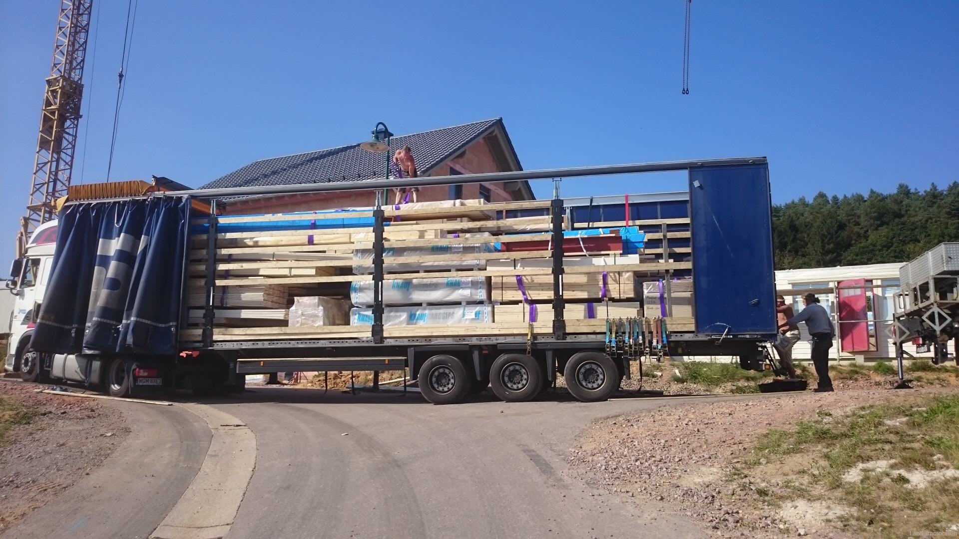Oktober 2014...schwedischer Bungalow in Rheinland-Pfalz...Baulogistik, Feinabstimmung mit den Bauherren kurz vor der Montage