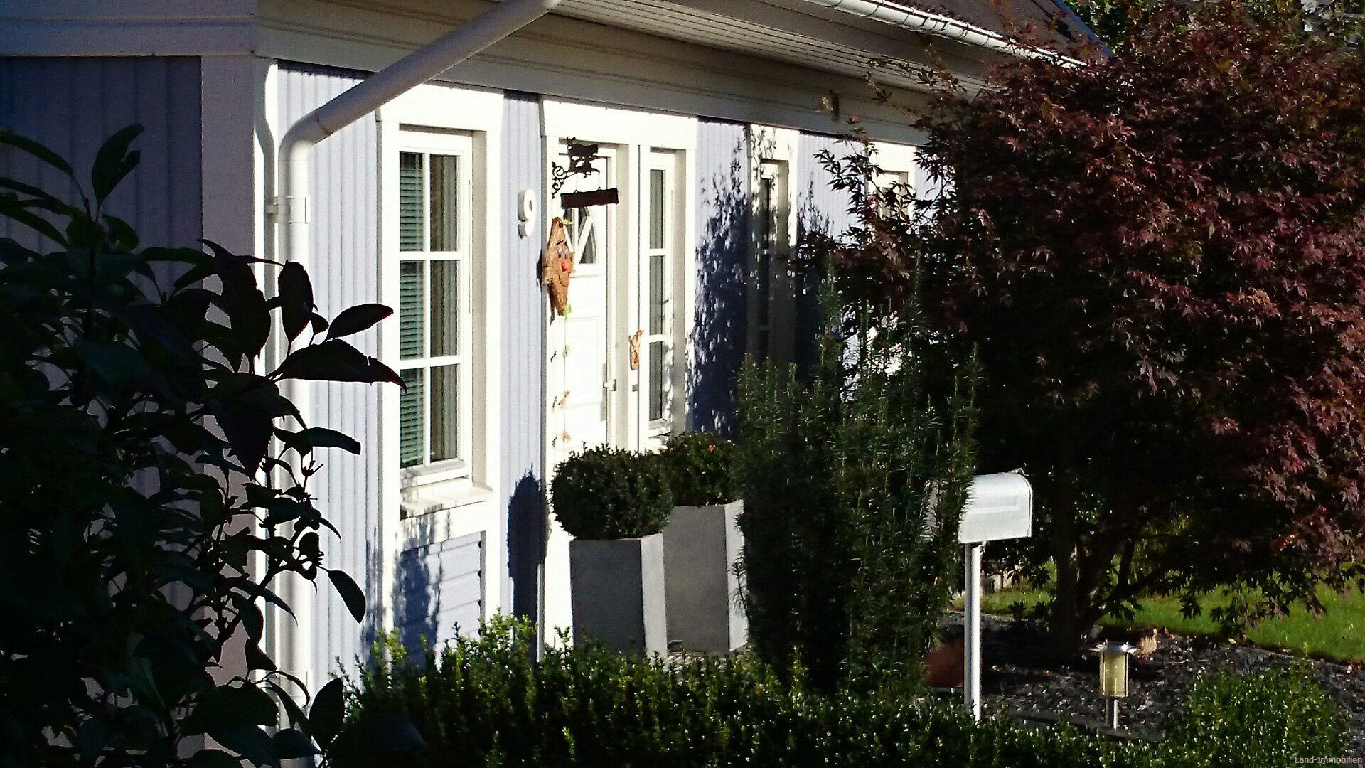März 2014...ein Schwedenhaus mit Bodenplatte ...im Einklang zum Holzhaus der schöne Landhaus-Vorgarten...