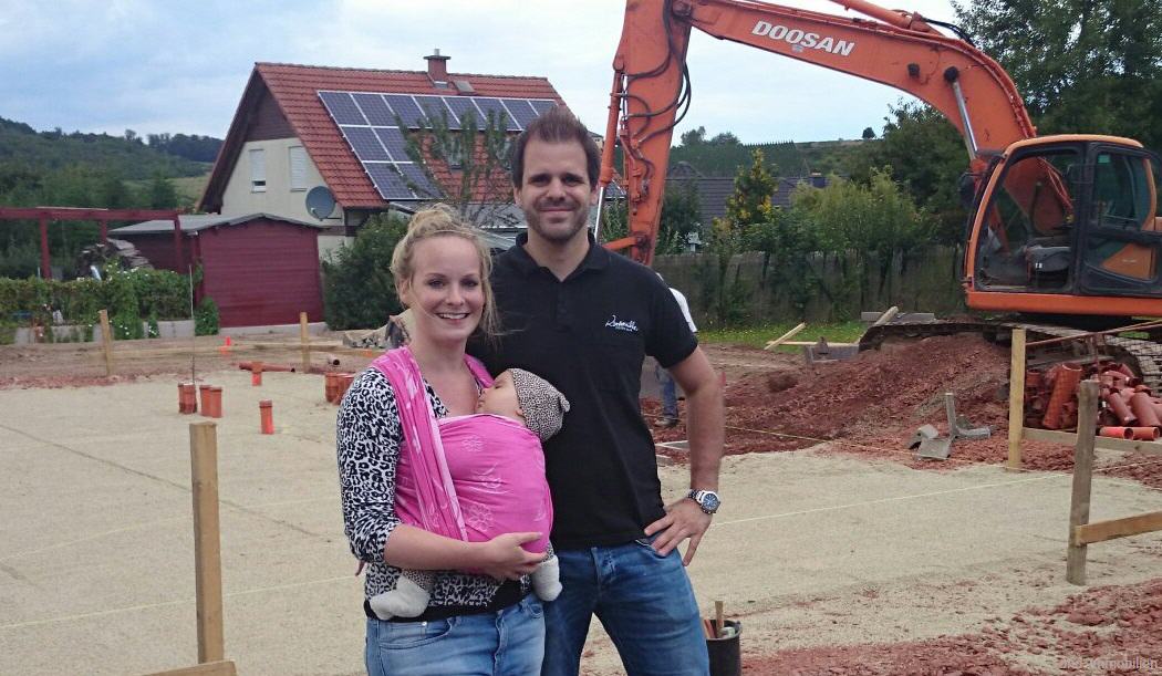 August 2014...Schwedenhaus in Rheinland-Pfalz..die Bauherren-Familie, kurz vor Einzug in ihr neues Holzhaus