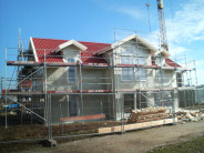 Baustelle im März 2011. Individuell geplantes Holzhaus mit 2 Vollgeschossen. Besonderheiten: Außenfassade verputzt, Heizungssystem Fernwärme...